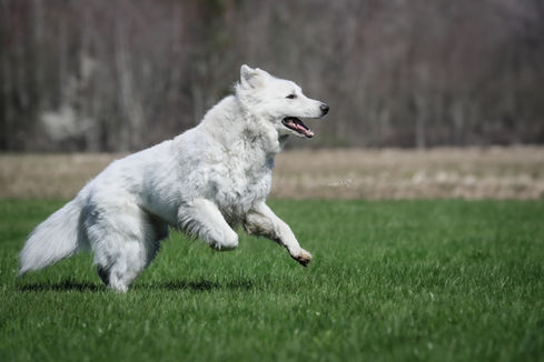 Though he is just a pup, Bravo has a super "on and off" switch and is a very easy going boy. He is ready to do whatever you put in front of him if it looks like a good time! Bravo has a very open and friendly temperament and is very a gentle and kind natured. With that said, he can also turn on the energy and show off his spicy side! He has a long THICK ultra white coat and beautiful black pigment. I think the fuzziest ears of all my dogs - he looks like a white lion with all the ear floof! Bravo has an extremely open, fluid and efficient gate, beautiful angulation, and a stunning, masculine head. He has attended a limited number of dog shows (including the 2024 Premier Nationals) and became a Show Champion at just over a year old! At Premier Nationals in 2024 (his first show ever!), he made us proud by taking home "best male" in 2 of the 3 shows with lovely competition. I have high hopes for this sweet guy!